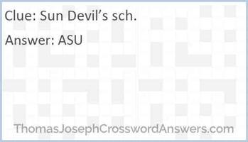 Sun Devils' school, for short crossword clue Sun Devils' school, for short. Last appearing in the USA Today puzzle on July 13, 22 this clue has a 3 letters answer. Sun Devils' school, for short has also appeared in 0 other occasions according to our records. Below you will find the answer to the clue but if it doesn't fit please feel free to contact us directly or write a comment to ...